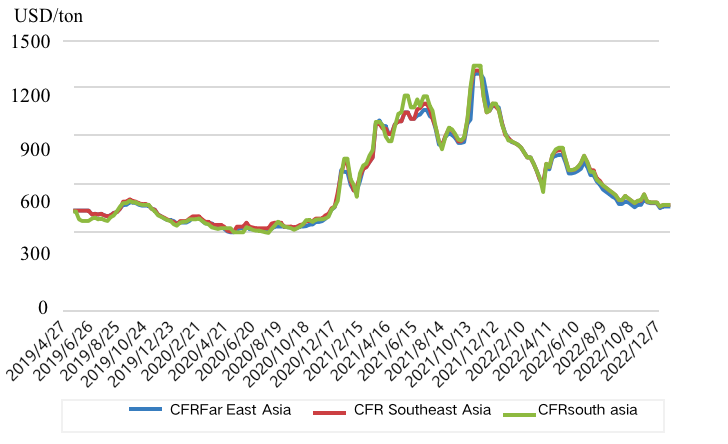 수치 1. 2019년부터 2022년까지 아시아 아세트산 가격 차트
