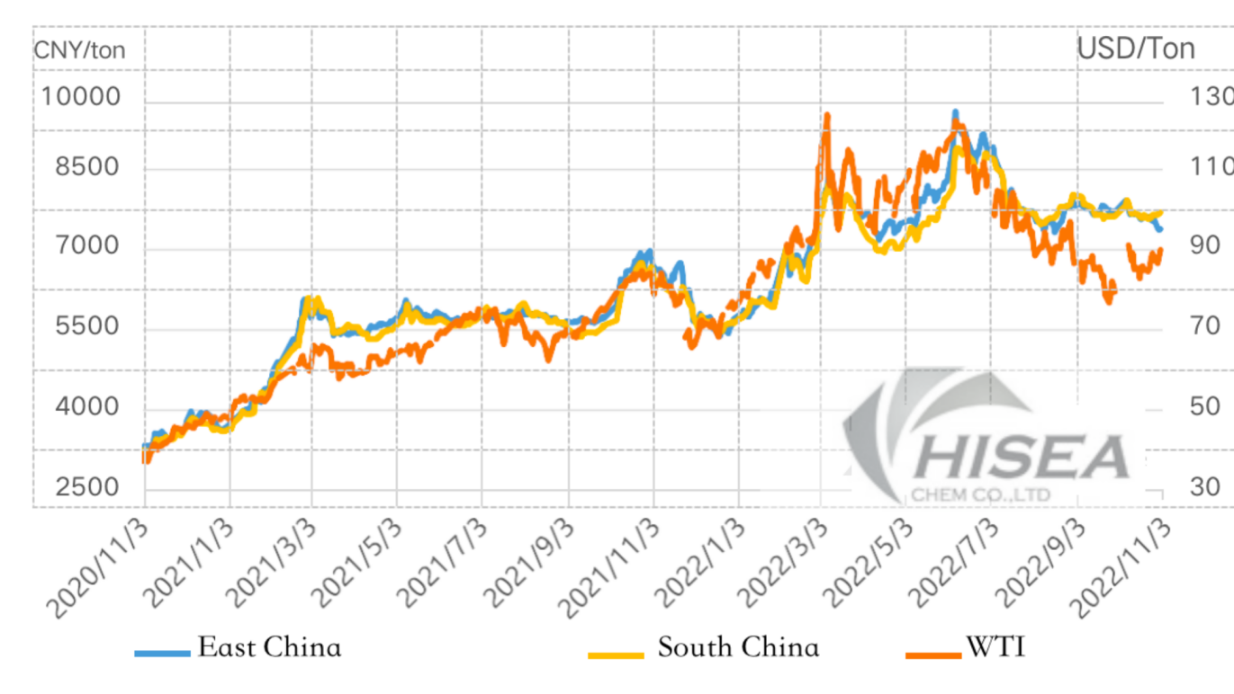 유럽의 톨루엔 시장은 먼저 하락한 후 상승했습니다.전반적으로 국제 원유의 추세를 따릅니다.유럽 및 미국 시장의 주요 동인은 휘발유 혼합에 대한 수요가 여전히 강세인 반면, 화학 제품에 대한 수요는 계속 감소하고 있습니다. 미국의 톨루엔 시장 가격은 안정적이며 시장 거래는 조용합니다.
