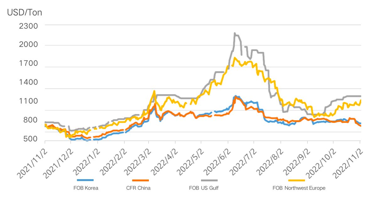 유형 | FOB 한국 | CFR 중국 | FOB 미국 | FOB 유럽 |